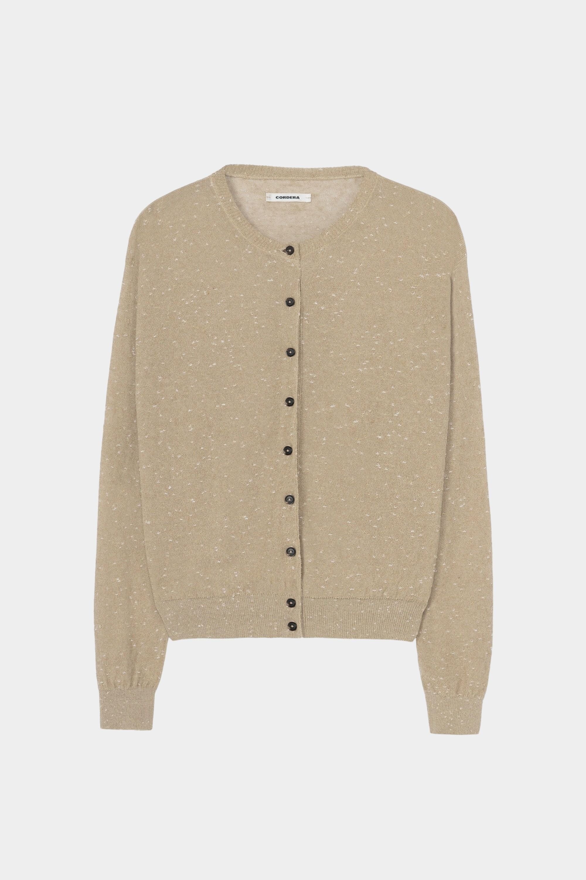 Linen & Cotton Flecked Cardigan, Beige