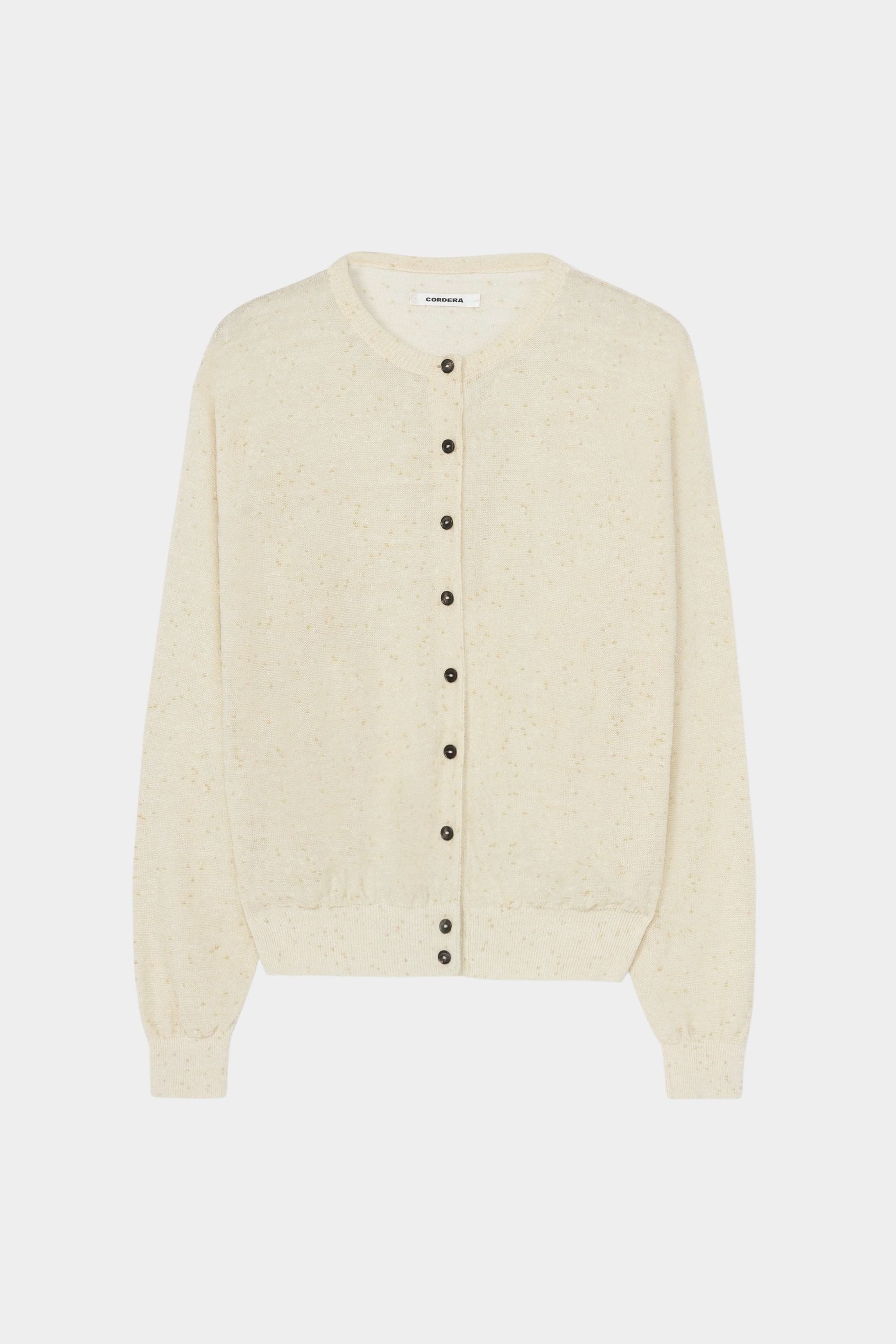 A relaxed cardigan knit from a breathable linen and cotton blend with subtle flecked texture. Designed with an oversized silhouette, this lightweight knit offers easy layering while maintaining a clean, effortless look. Soft texture and airy structure make it an ideal transitional piece for warmer seasons.