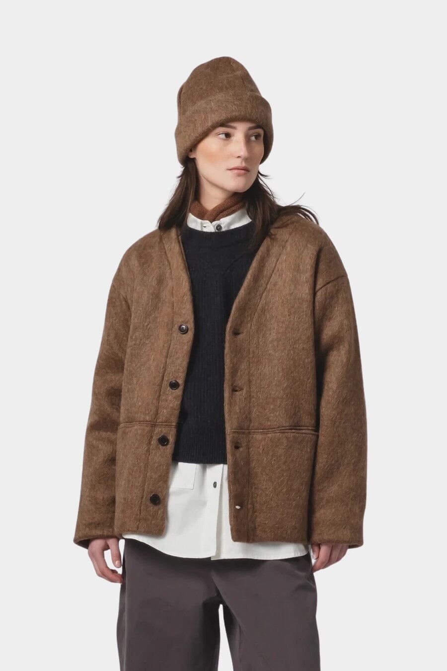 Skully Hat in Java Brown designed by Girls Of Dust. This thick and spacious beanie is crafted from a mohair wool blend, making it a cozy and stylish choice for anyone. Its unisex design means it’s perfect for sharing, and it’s sure to stand out as a bold accessory throughout the winter season.